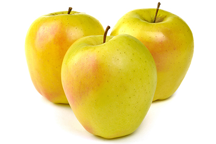 La Golden (rosagold) est une pomme jaune avec parfois des faces rosées. Elle a une forme allongée. C’est une pomme à gros moyen.